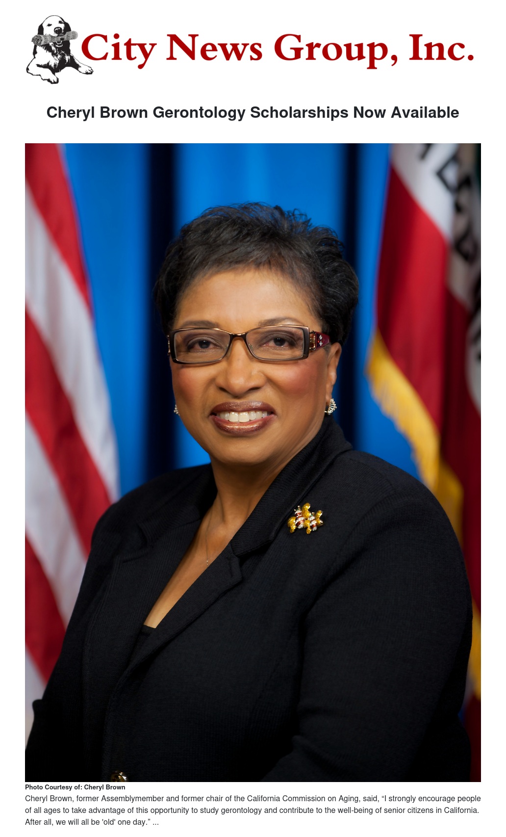Cheryl Brown, former Assemblymember and former chair of the California Commission on Aging, said, “I strongly encourage people of all ages to take advantage of this opportunity to study gerontology and contribute to the well-being of older adults in California. After all, we will all be 'old' one day.”