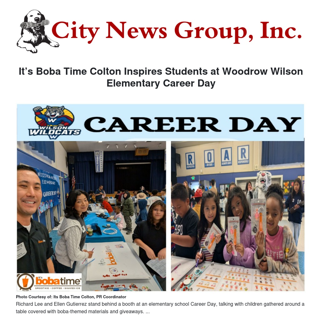 It’s Boba Time Colton was invited by Woodrow Wilson Elementary School to participate in its annual Career Day, joining a diverse group of professionals representing careers in medical, music, law, and more. All students joined the event, creating a lively and engaging atmosphere across campus.