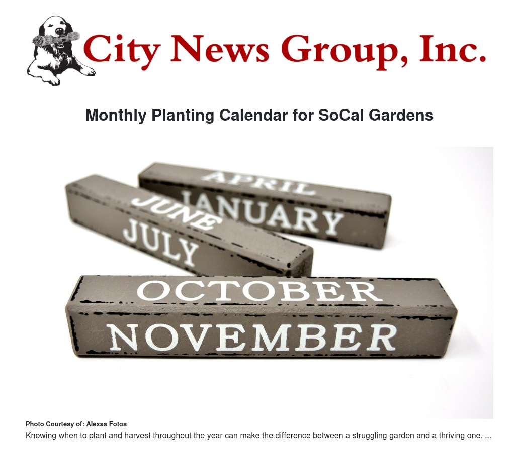 Monthly Planting Calendar for SoCal Gardens by Ellis Greenwood - City News Group, Inc.
