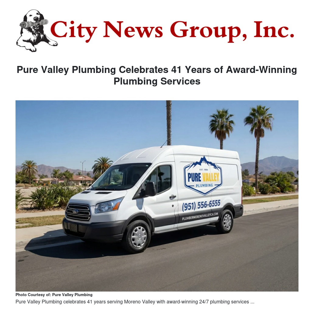 For more than four decades, Pure Valley Plumbing has been more than just a service provider—it’s been a trusted partner in keeping homes and businesses across the Inland Empire running smoothly. Based in Moreno Valley, Pure Valley Plumbing proudly serves communities across Riverside and San Bernardino counties, including Perris, Redlands, Loma Linda, Colton, and beyond. Wherever they go, their mission remains the same: deliver fast, honest, and high-quality service people can rely on. Now celebrating an impressive 41 years in business, the Moreno Valley-based company continues to set the standard for dependable, high-quality plumbing under the leadership of owner Cory Lukach.