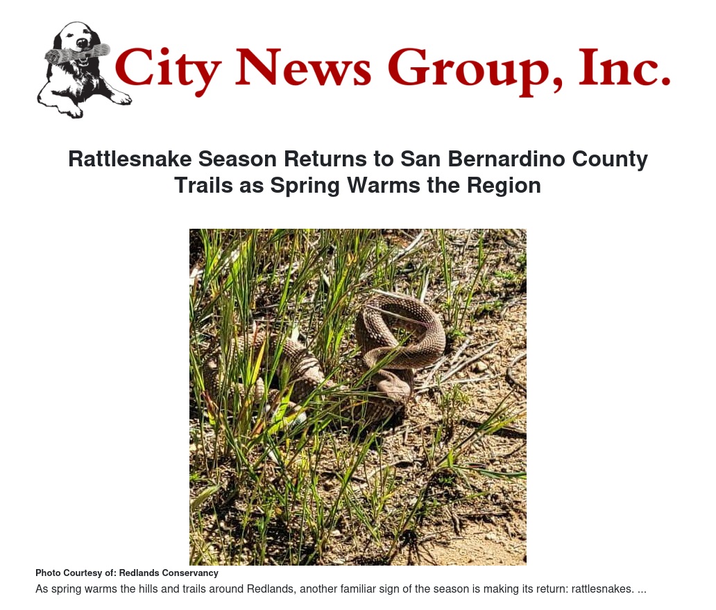 Encounters like this serve as a reminder that throughout San Bernardino County, outdoor spaces are active habitats. With awareness and caution, residents can continue to safely enjoy the region’s trails during the spring and beyond!