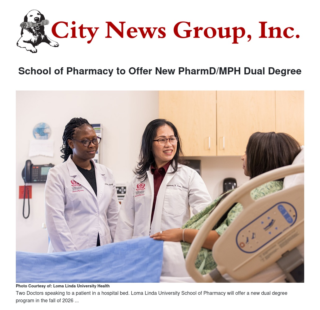Loma Linda University School of Pharmacy will offer a new dual degree program in the fall of 2026 that combines a Doctor of Pharmacy (PharmD) with a Master of Public Health (MPH) in Population Medicine from the School of Public Health, designed for incoming students seeking to integrate pharmacy practice with population health to advance community wellness and address broader public health challenges.